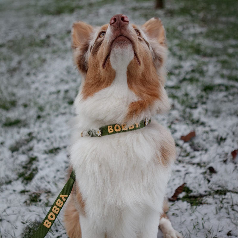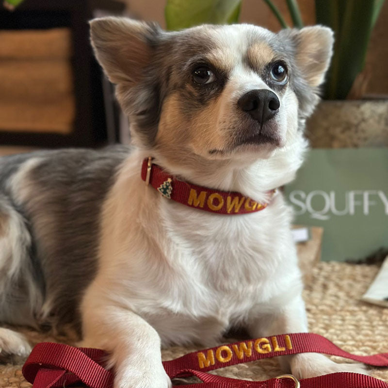 Every Squffy piece is made to reflect your dog’s unique personality. Choose from multiple embroidery fonts and thread colours to make their name truly theirs, or style their collar with themed enamel pins that match their mood, the season, or your adventures together. Whether you prefer something timeless, playful, or bold, every detail is yours to design.