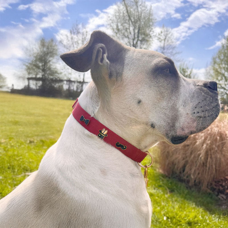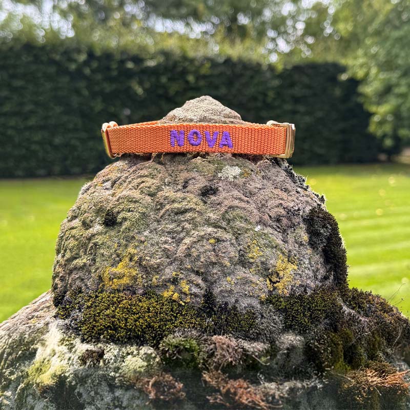 Design a collar that suits your dog’s personality and lifestyle. From the base style to embroidered names and fun pins, you choose what’s next.