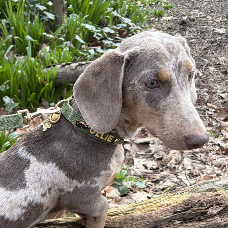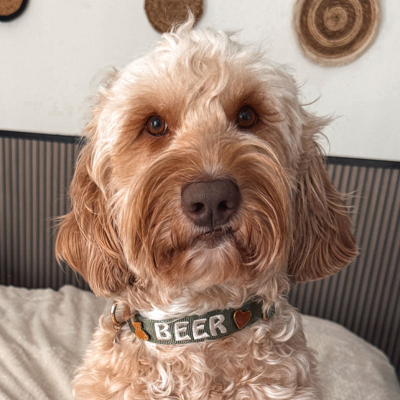 Add your dog’s name with embroidery to make the set even more personal.