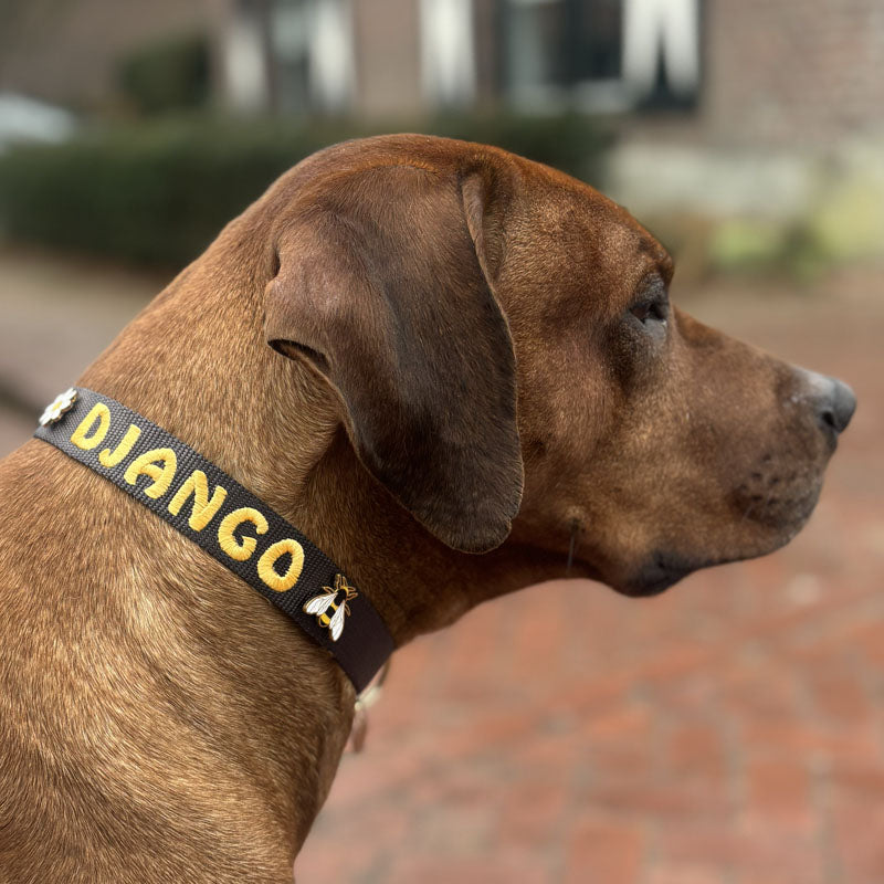 Yes. Our Classic Collars allow you to add both embroidery and pins. Combine your dog’s name with your favorite pin designs for a look that’s both personal and stylish.