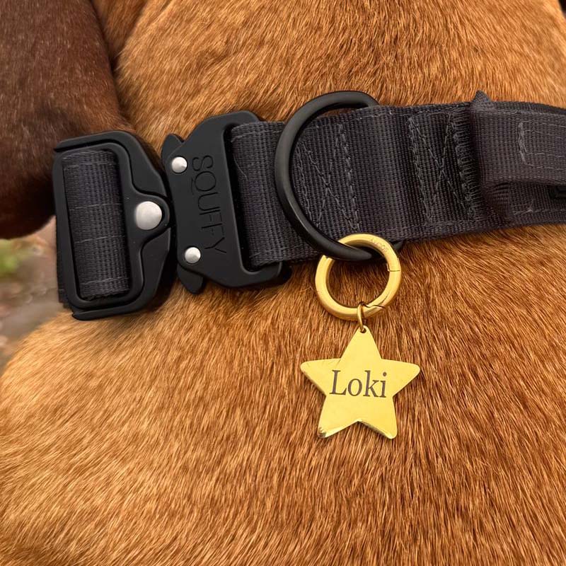 The Raven Vex Tactical Collar is designed for power and comfort, ideal for large, high-energy dogs. Made from reinforced nylon with heavy-duty hardware and a quick-release frog clasp, it thrives in tough environments. The adjustable design ensures a secure fit, while the soft padded lining provides extra comfort for extended wear. Its shadowy tone and sleek black hardware reflect strength and resilience, making it perfect for adventurous dogs who need both durability and style.